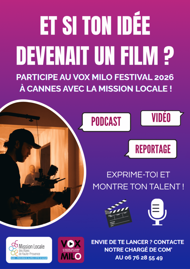 Le VOX MILO Festival revient en mars 2026 à Cannes, et la Mission Locale des Alpes de Haute-Provence accompagne les jeunes motivés pour y participer !